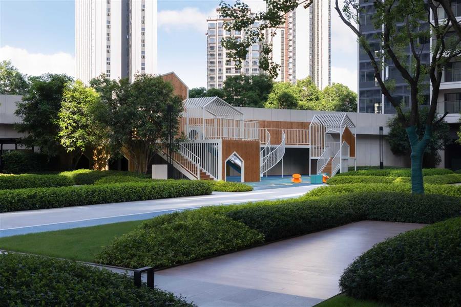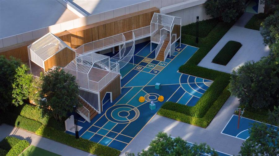 結(jié)合架空層設(shè)計(jì)的酒店式泳池,塑造度假氛圍感,營造獨(dú)特休閑一隅,提高整個(gè)社區(qū)的居住品質(zhì)。分齡式的泳池設(shè)計(jì),兒童成人分區(qū)的構(gòu)建和親子互動(dòng)體系,具備人性化,使得每個(gè)年齡層的家庭成員皆可體驗(yàn)度假氛圍。