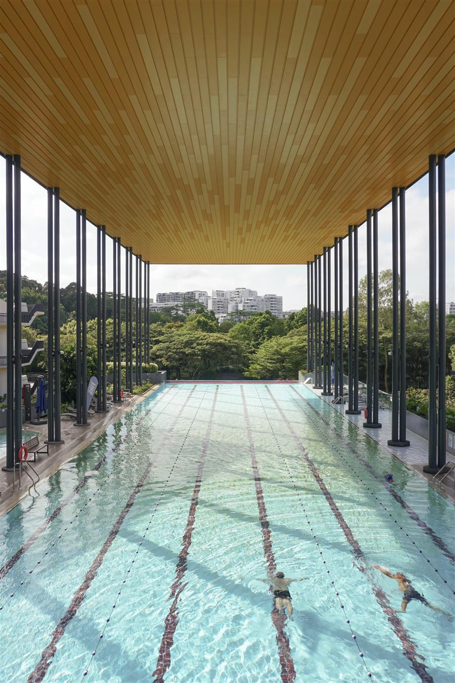SAFRA Choa Chu Kang(SAFRA蔡厝港會(huì)所)坐落在廣闊的公共公園中心,是一個(gè)休閑會(huì)所,為國家軍人及其家屬提供廣泛的健身和保健活動(dòng),包括游泳池、五人制足球場、卡拉 OK 廳和水療中心。SAFRA CCK 的建筑風(fēng)格張揚(yáng)、獨(dú)特,讓人聯(lián)想到健身運(yùn)動(dòng)并從中受到啟發(fā)--從大膽的超大桁架到象征團(tuán)結(jié)和力量的預(yù)制顏料混凝土拱形正面。而在其堅(jiān)固的外表下,則是一個(gè)充滿活力的自然和人文社區(qū),通過一條中央主干線從公園流淌而入。其結(jié)果是自然與健身的無縫交錯(cuò),為社區(qū)注入了新的活力,重振了社區(qū)精神。