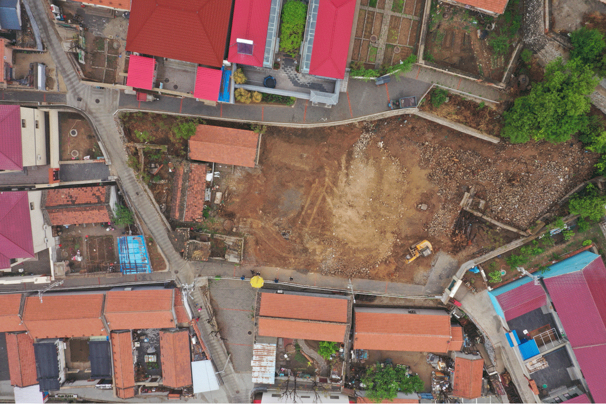 兩個(gè)地塊分別被命名為6號(hào)院(西側(cè))和7號(hào)院(東側(cè)),我們將7號(hào)院原有的地面進(jìn)行整體填充,使其與6號(hào)院地坪等高,也為后來(lái)的圍合型院落創(chuàng)造了條件。