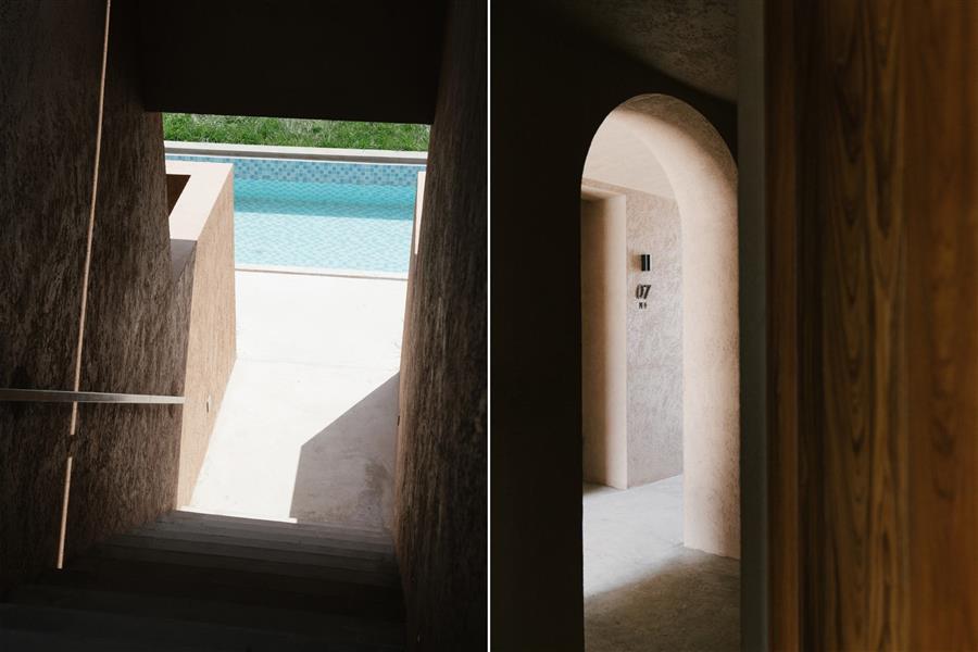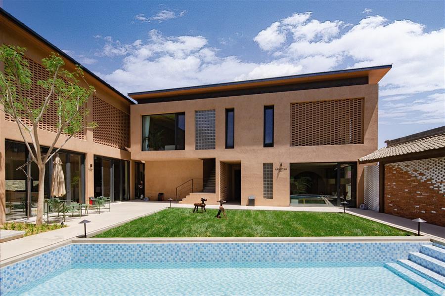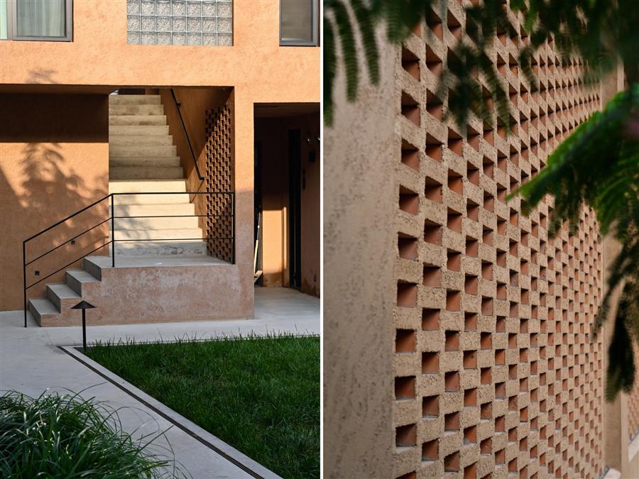 部分墻面花窗的設(shè)計(jì),既是為了遮擋視線和白天強(qiáng)烈的陽(yáng)光,也豐富了建筑的層次。