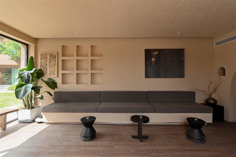 其中坐和躺的位置盡量用地臺(tái)代替床品和沙發(fā),用泡池代替浴缸,在喚醒鄉(xiāng)村回憶的同時(shí),也保證空間能夠更加高速、方便的運(yùn)營(yíng)。