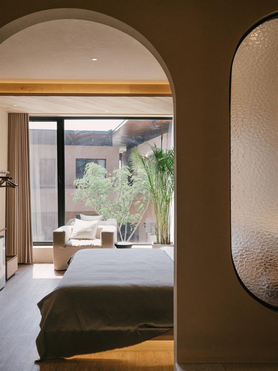 6號(hào)院整棟均為住宿空間,為了達(dá)成更好的居住體驗(yàn),其被分割為四棟獨(dú)立的小型單元,用連廊和整體的金屬屋面進(jìn)行連接,在視覺(jué)上形成了一個(gè)整體,在空間感受上又能相對(duì)獨(dú)立。