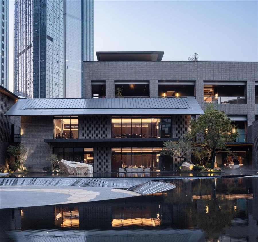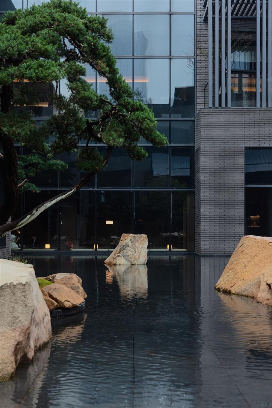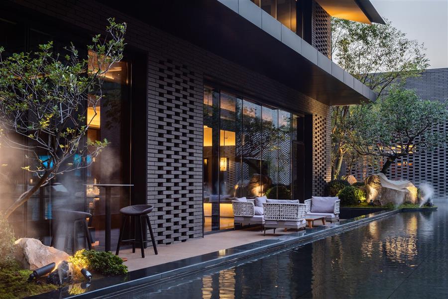 酒店的餐廳、泳池、健身房、會議室,分布于村落之間,不同的屋舍對應了不同的酒店功能,探索游走的過程,同時也是一個游園的過程,步移景異間,住客自己也成為了畫中之人,如同一場生動的空間實驗戲劇。
