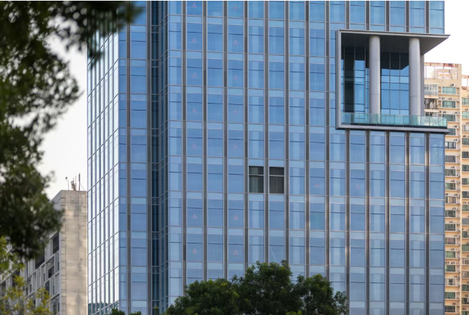 項(xiàng)目位于深圳市福田區(qū)華強(qiáng)北街道,緊鄰振華路與上步路,是由濱江集團(tuán)和愛義集團(tuán)聯(lián)合開發(fā)項(xiàng)目。建設(shè)用地面積 5605.5平方米,容積率 9.1,計(jì)容建筑面積 51010平方米。由兩幢超高層建筑組成,其中辦公建筑 37層,高約 180米,回遷住宅建筑40層,高約120米。