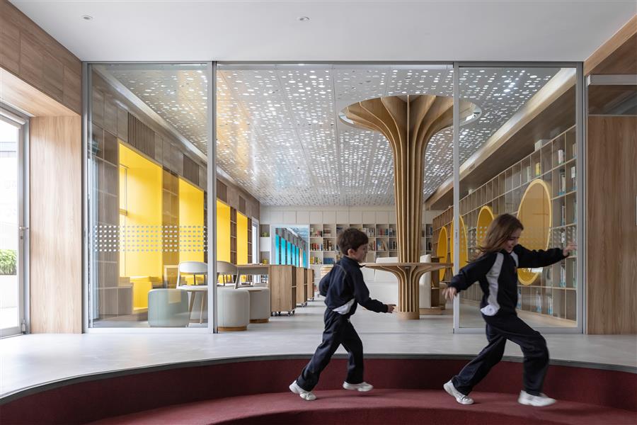 精選的材料確保抵抗和耐用性,對日常使用。家具促進探索和運動,讓孩子們自由地與空間互動。天花板由手工制作的穿孔鋁板組成,均勻地分配光線,隱藏裝置,創(chuàng)造一個有序的環(huán)境,提高注意力。