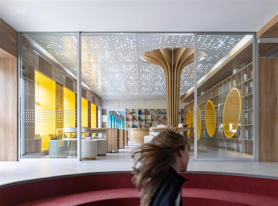 學習管理中心將學習空間轉變?yōu)橐粋€功能和溫馨的環(huán)境,以促進學生之間的學習,閱讀和互動。該項目反映了占用空間的新方式,并結合了適應當代設計需求的類型學建議。