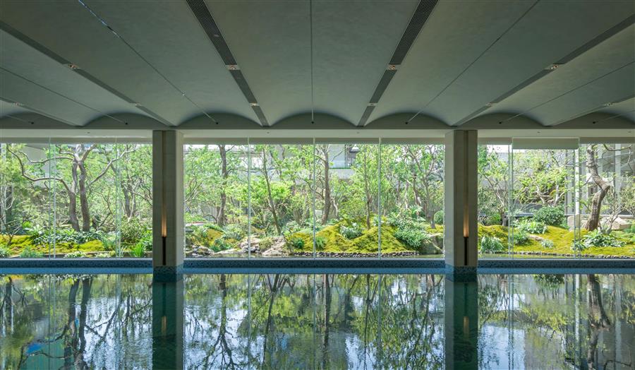 承襲隈研吾“自然入室”的建筑哲學(xué),結(jié)合安縵、寶格麗等奢華酒店的空間意境,框景式會所接待廳以自然為畫、建筑為框,將四季風(fēng)景納入空間敘事,營造“推窗即景、入境即心”的儀式歸屬感。