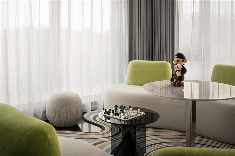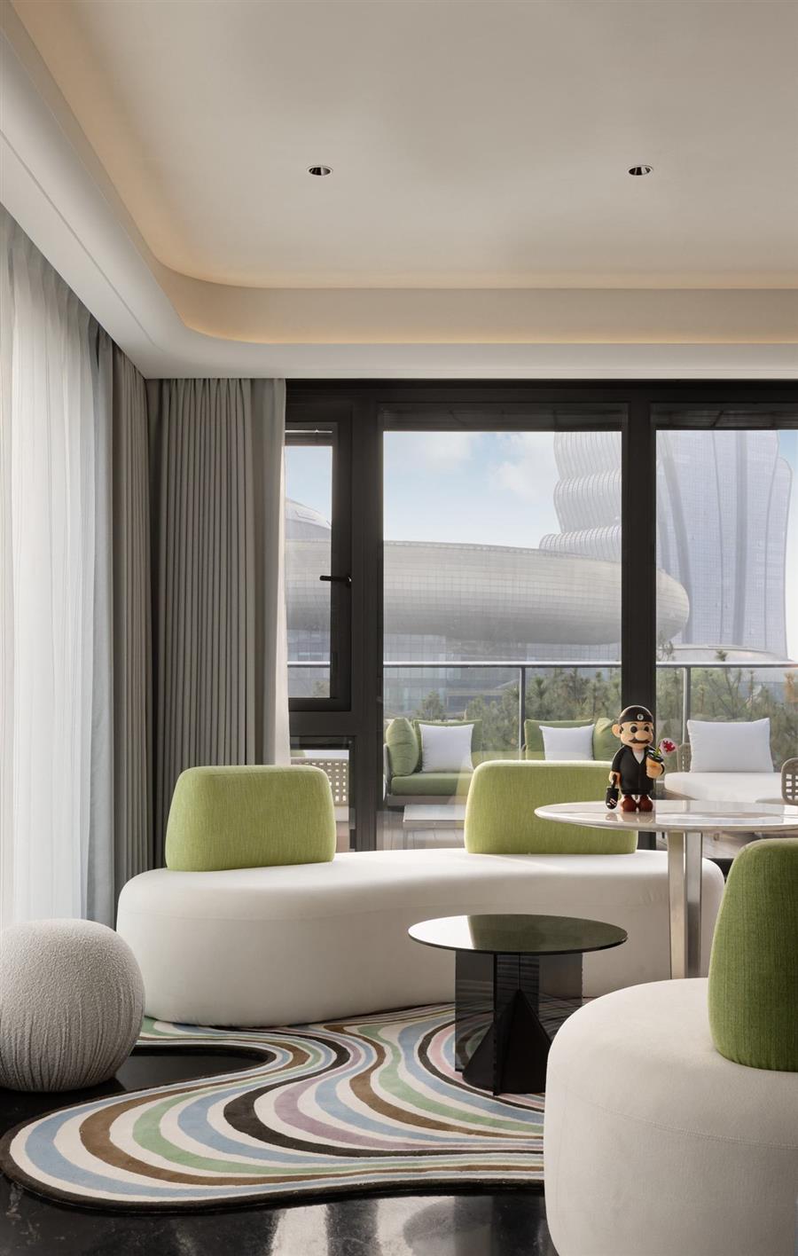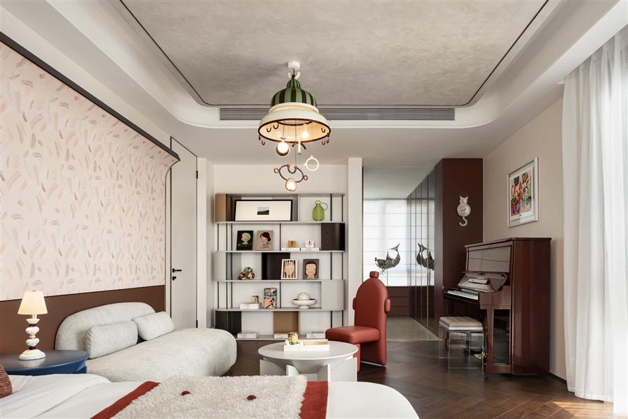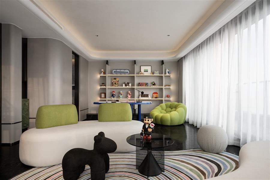 反倒是頂樓的書房、露臺(tái)、親子互動(dòng)區(qū)域向下呼應(yīng)二者的功能。每一片領(lǐng)域都在兼具年輕群體的個(gè)人體驗(yàn)與生活喜好。270度環(huán)景眺望,此刻的舒適成為了焦點(diǎn)。