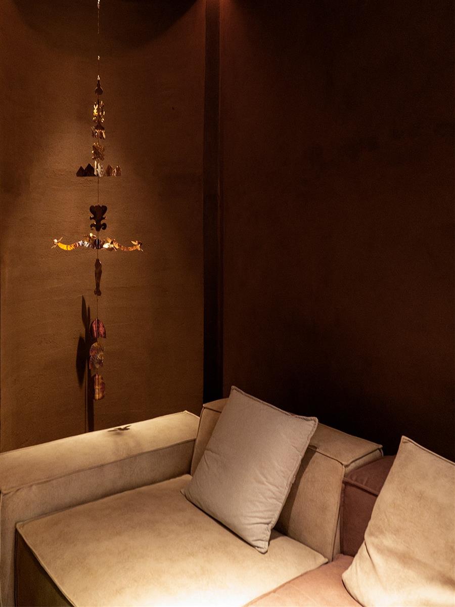 也是受到這個日常生活中觀察的啟發(fā),我們決定將“內(nèi)向”的空間視為一座小型美術(shù)館,將藝術(shù)帶入這樣一個推拿店的空間體驗中。