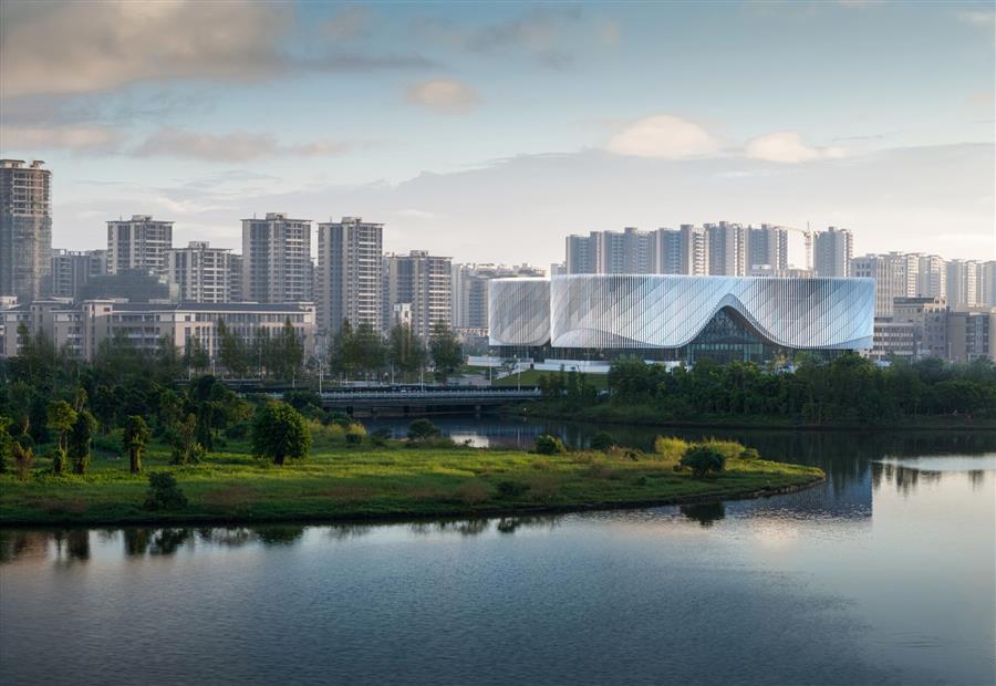 2. An open platform to energize the community - Architects hope that the cultural center will not only be designed as a surrounding landmark, but regarded as a vibrant place shared with parks and providing citizens with multiple experiences. The podium extends to the Moyang Lake Park, on which a gentle grassy slope is set, and functions such as cafe, bookbar and recreational activities are integrated. Citizens can enter the space at will to stay or rest. The ornamental plants and stone steps on the platform allow people to enjoy the panoramic view of Moyang Lake and river and carry out various social activities on the platform without interfering. The green platform that becomes part of the park can carry a variety of activity types, connect the people and activities of the cultural center and the park, transform the building from a closed traditional cultural public building into an activity place open to the community at ordinary times, and stimulate the community vitality of the new urban area.