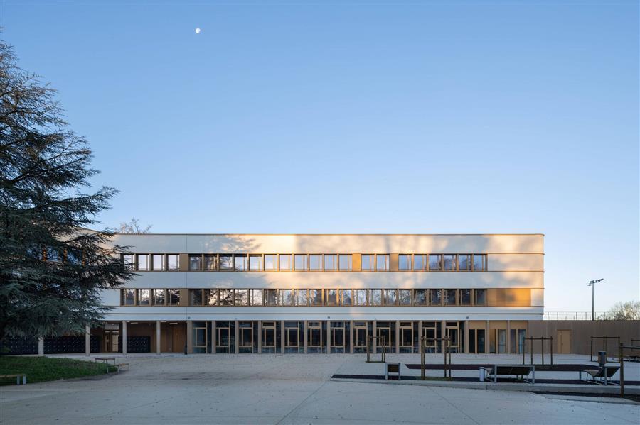 By respecting the site's wooded character, the project offers a clear architectural response, providing the future school with a contemporary identity and exceptional environmental performance. Perceived as a major public facility without being monumental, its horizontal scale ensures a harmonious integration into the surrounding neighbourhood. The school serves as a place of identity and belonging for students, staff, and local residents alike.