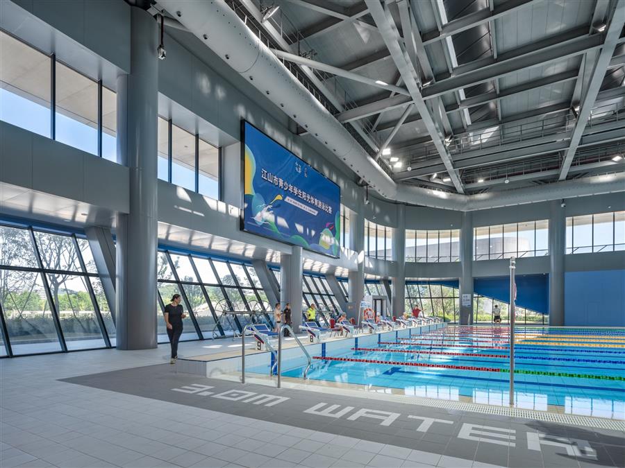 項(xiàng)目建成后,江山成為衢州首個(gè)完成“一場兩館”體育體系建設(shè)的縣市。這一游泳館的落成不僅顯著提升了區(qū)域體育基礎(chǔ)設(shè)施水平,也填補(bǔ)了江山長期缺乏公共泳池的城市空白,為承辦各類賽事與市民日常使用提供了新的空間可能。