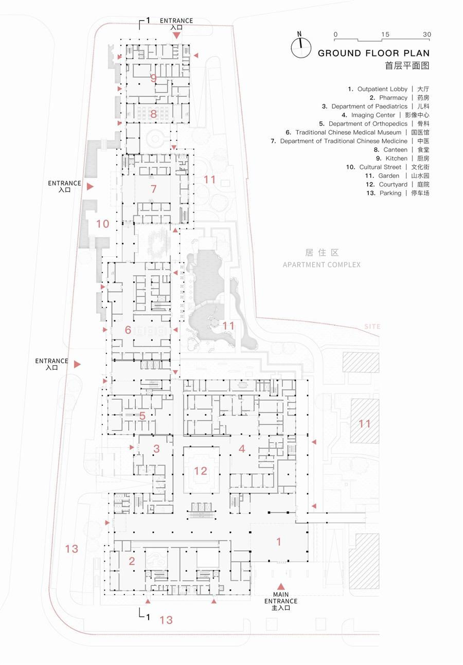 通過多變的空間組合協(xié)調(diào)不同的功能,中醫(yī)院形成高效的診療流程,現(xiàn)代化管理模式又與山水園結(jié)合,為中醫(yī)院增添幾分濃厚的人文怡情。