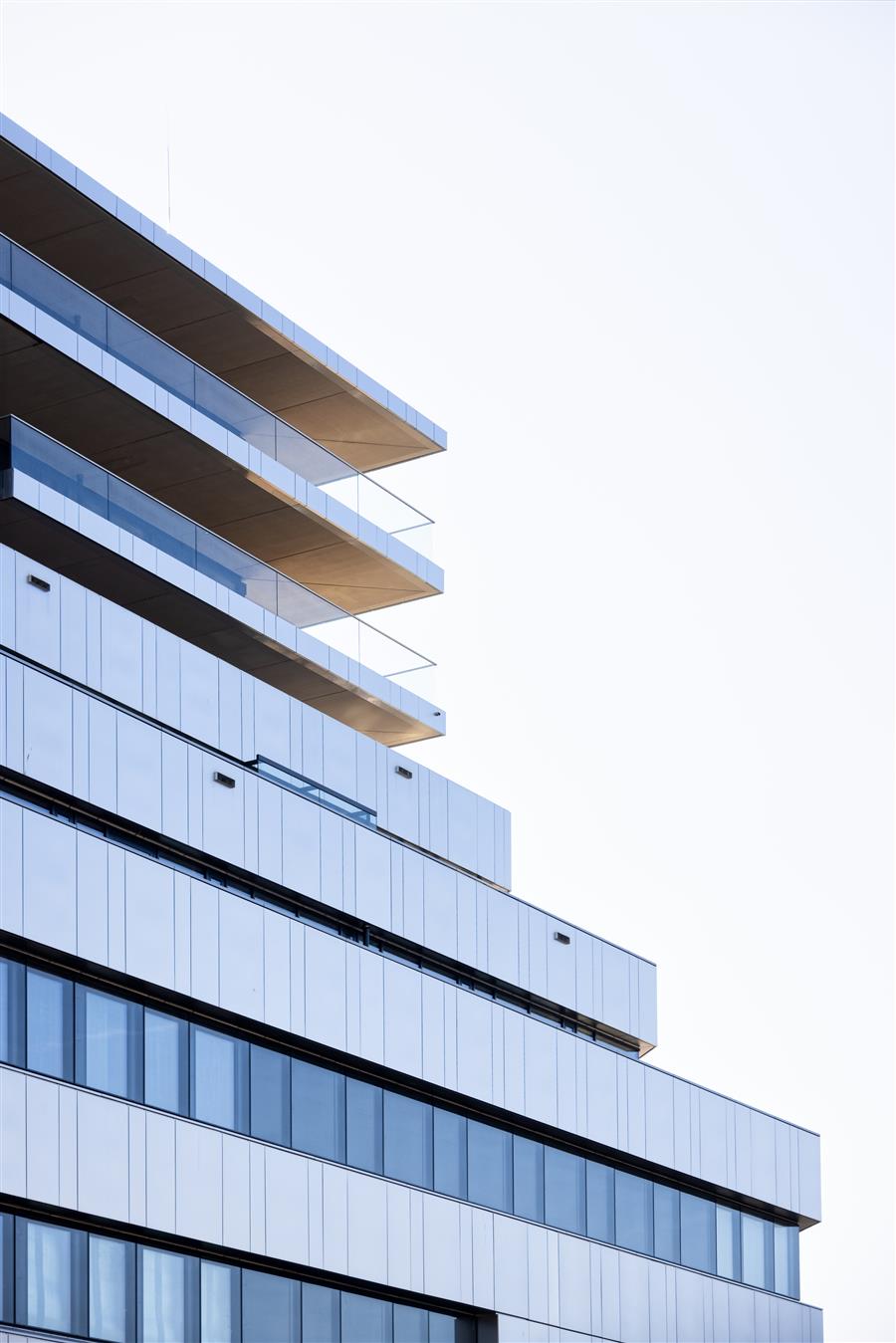 The facade of the building was freed from its mirroring. The new stainless steel cladding of the fa?ade has a glare-free and silky matt appearance thanks to its fine embossing, while the terraces create additional open spaces for restaurants and offices and a counter-design to the building's previous seclusion. Another planning focus was on the design of a vivid base zone. The extensive opening of the base achieves the desired spatial relationship to Julius-Tandler-Platz, makes the station hall more attractive, and creates an inviting connection to the central plaza level. At the northern rear of the building, a connecting structure from the 1970s, between the office complex and the garage, was removed in order to return to Karl Schwanzer's 900 idea of a cubic solitary building.