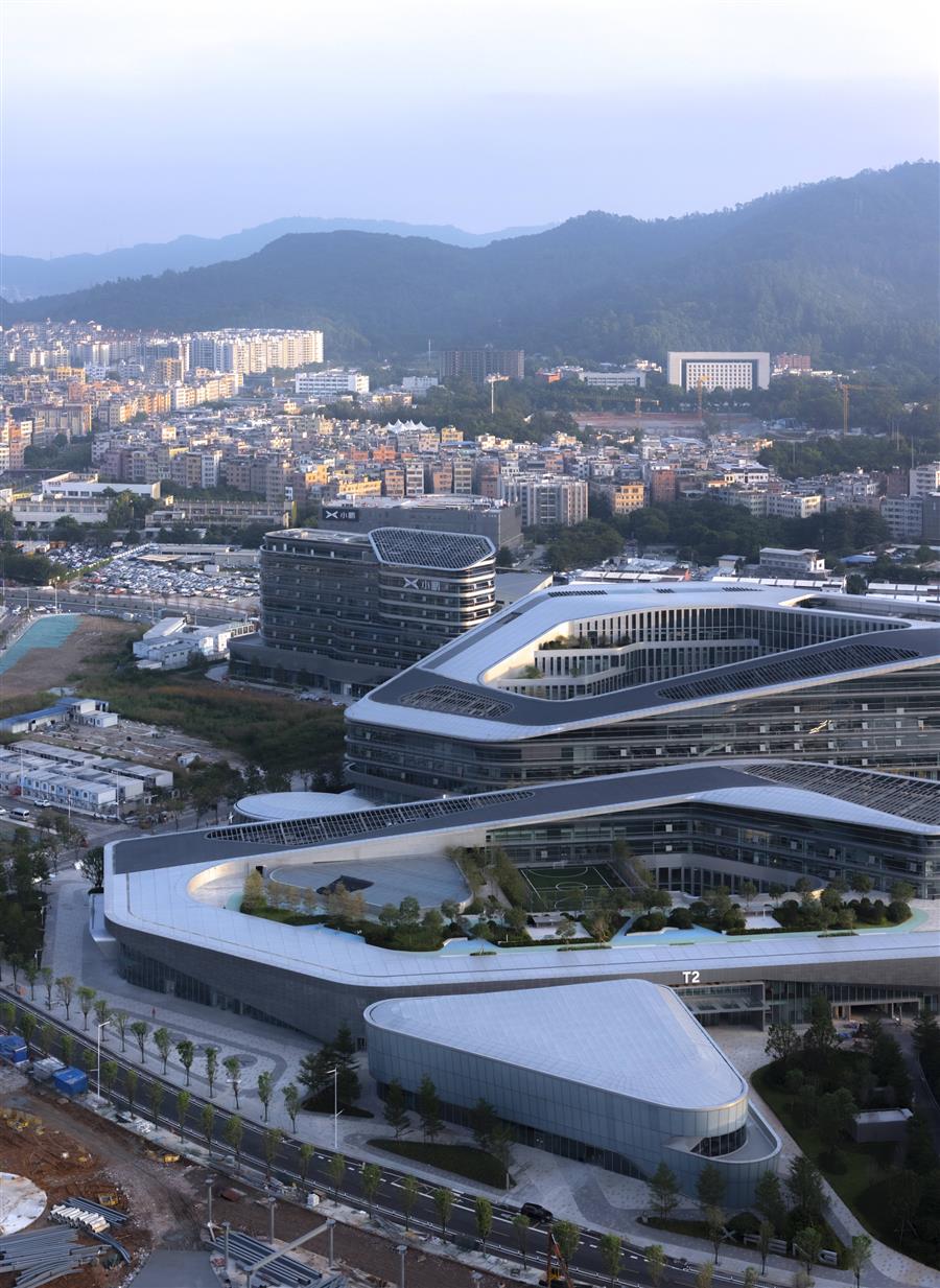 The automotive industry is one of the most significant drivers of socio-economic development in contemporary society. Major automobile companies invariably invest considerable effort into the design and construction of their headquarters, and these buildings often become microcosms of society in their respective eras. The architecture of XPENG's new headquarters breaks away from the rigid image associated with the industrial age of the past, using a strongly dynamic design that resonates with the new era of intelligent mobility humanity is about to enter.