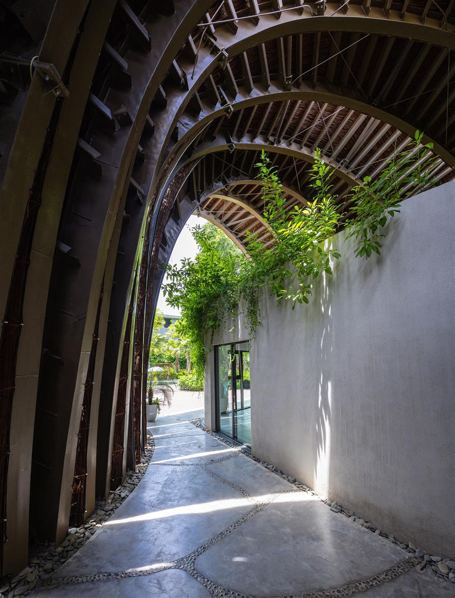 在正在經(jīng)歷強(qiáng)烈轉(zhuǎn)型的榮市區(qū)背景下,Gu?t花園會(huì)所不僅僅是一個(gè)功能性建筑,而是一個(gè)關(guān)于人與自然和諧相處的建筑宣言。這是一個(gè)從景觀中升起的雕塑杰作,作為材料和形式的交響樂(lè),情感和功能被編織到每一條曲線(xiàn)中。