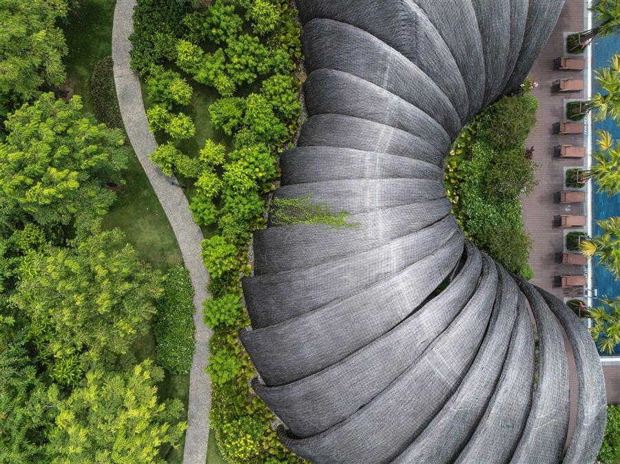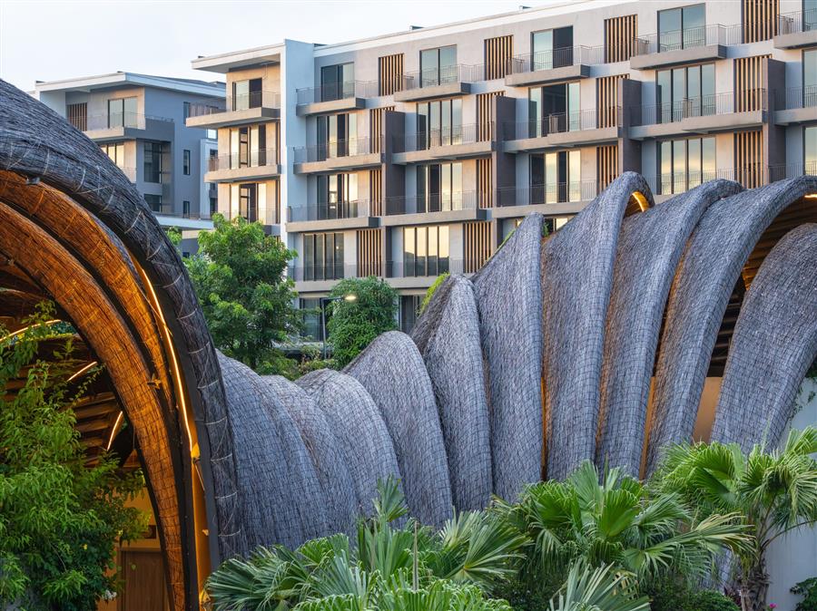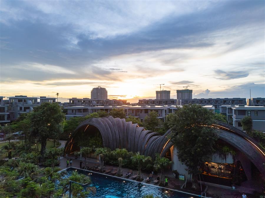 Form Flow: From The Mountain To The Dome – Inspired by the majestic contours of nature and the regional culture of Lam River, the architects created a non-linear architectural mass, challenging the angularity of the urban environment. This 8m high structure is not a standard clubhouse, but a giant seashell or an architectural flow coiling around the swimming pool.