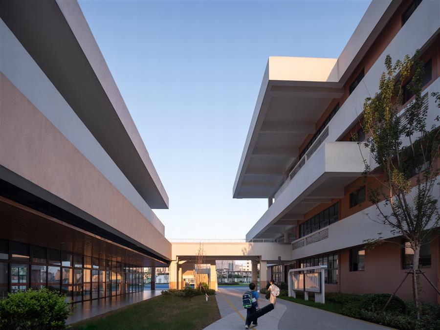 學校占地面積約3.7萬平方米,設(shè)計規(guī)模為60個班,可以容納2700名學生。用地規(guī)則,周邊是新建城區(qū),設(shè)計的開始就是尋找一個合適的敘事語境,為建筑賦予深層次的意義。這種意義與建筑師的個人經(jīng)驗相關(guān),也與建筑師對于城市、地域、環(huán)境的認知相關(guān)。