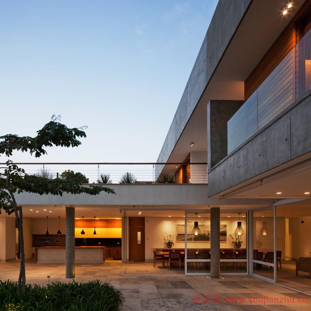該住宅是為一個(gè)家庭專門設(shè)計(jì)的,位于圣保羅的內(nèi)陸。寬敞的生活環(huán)境都在樓下,“L”形的組織規(guī)劃面臨著大花園和游泳池。兩個(gè)長斜道連接一樓的密集區(qū)域,形成的垂直環(huán)流成為一個(gè)非常愉快的步行路程,大廳寬敞明亮,連通著所有的空間。
