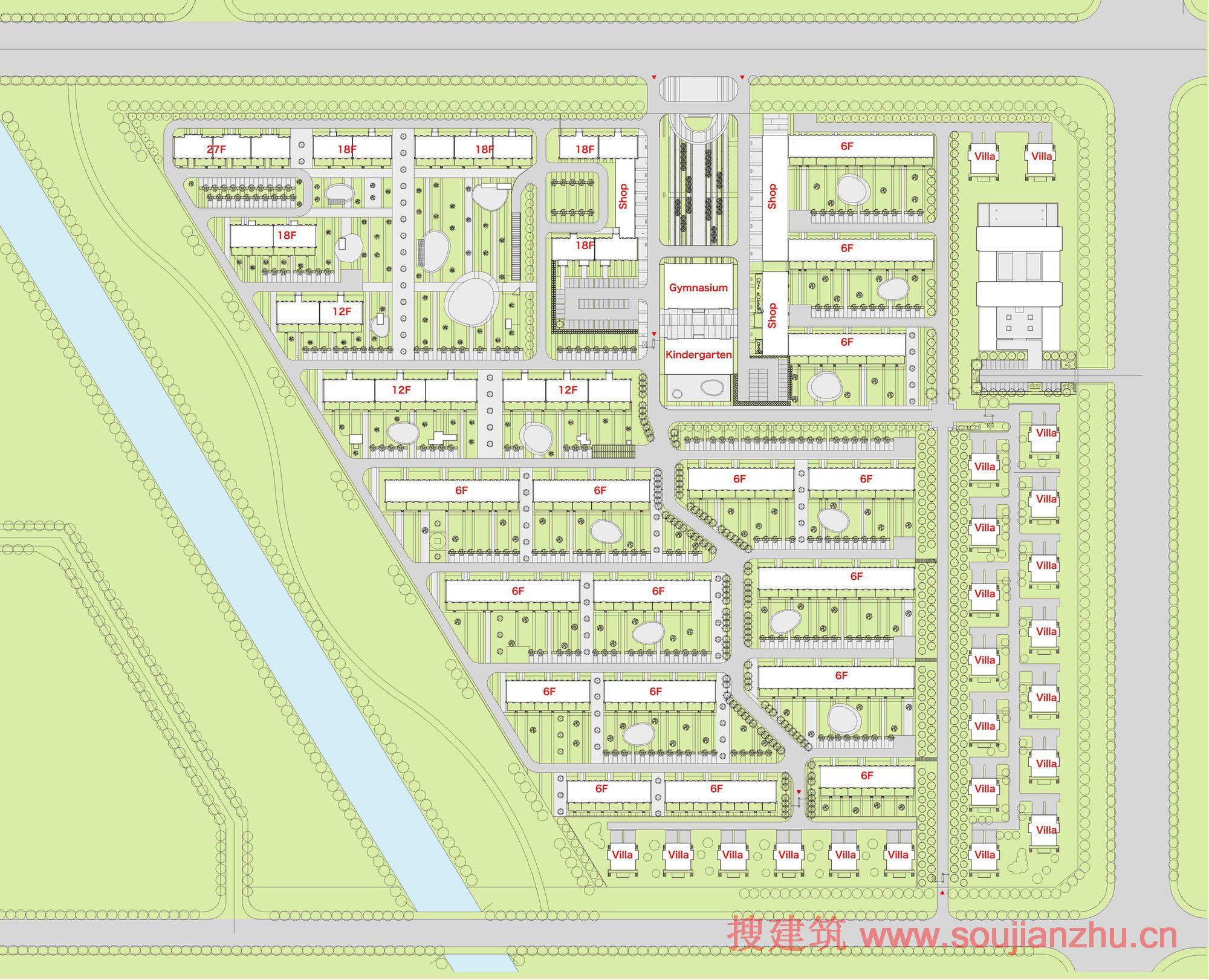 在本方案的門口已經(jīng)建造了一個(gè)縱橫距離達(dá)80米的中心廣場(chǎng)作為本小區(qū)居民們進(jìn)行各項(xiàng)活動(dòng)的公共空間,同時(shí)又可以和對(duì)面的政府大樓保持一定的距離。在小區(qū)復(fù)雜的南大門外,一個(gè)250米長(zhǎng)的內(nèi)部車道兩旁已經(jīng)種滿了有高有低錯(cuò)落有致的綠樹。道小區(qū)內(nèi)部的道路把多層住宅樓和別墅分成兩個(gè)不同的區(qū)域,有多條道路可以到達(dá)。保護(hù)了別墅內(nèi)部的個(gè)人隱私。