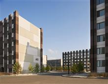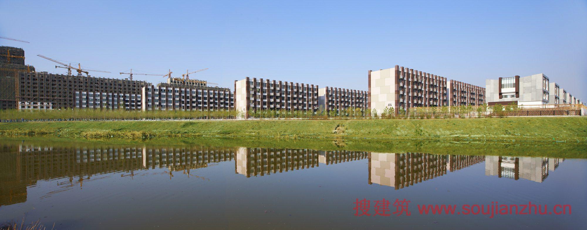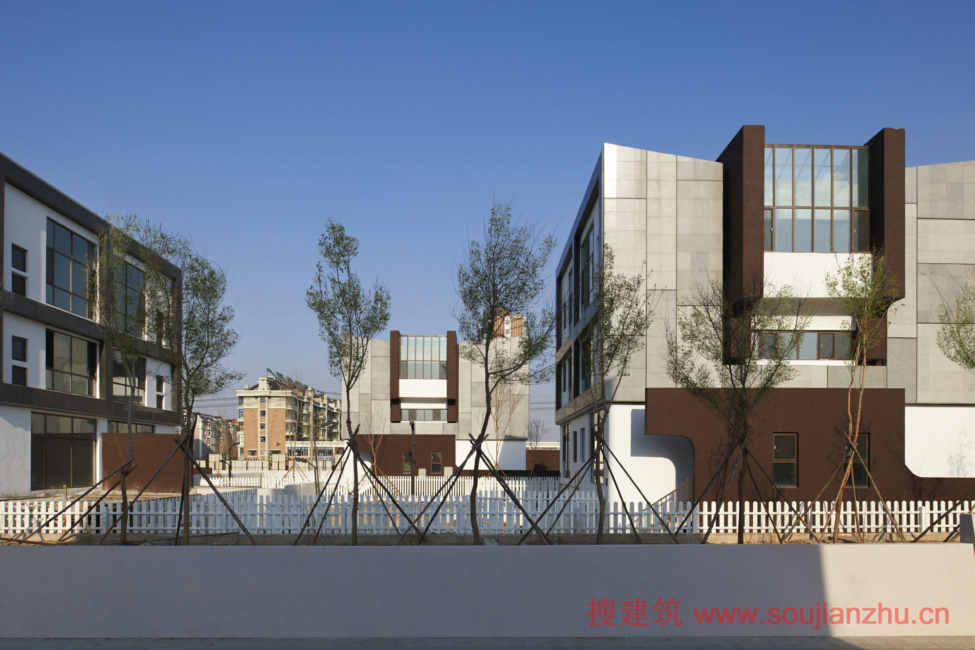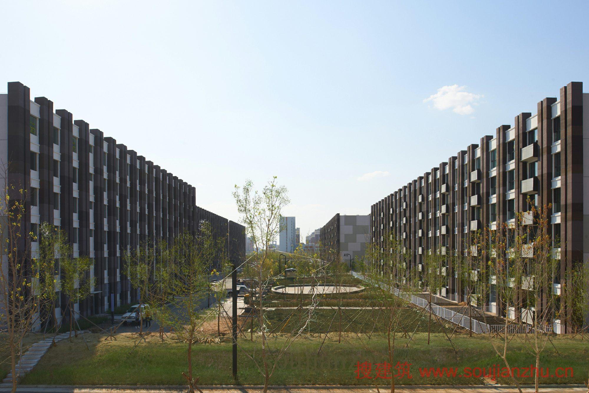 總體布局:半獨(dú)立式別墅位于地塊東南部,而中間的6層住宅,在西北角。讓盡可能多的居民都能夠享受到戶外自然光的照耀,同時(shí)又能夠觀賞到沿黎明河而建的開放的水上景觀。該建筑在南北布局的缺點(diǎn)是,來自東西方向寒冷的空氣和冬季陣風(fēng)會(huì)透過窗戶上的玻璃表面帶走室內(nèi)熱量。為了盡可能的不讓房屋內(nèi)的熱量散失以給住宅樓房屋更有效的保溫,建筑師們想了一個(gè)辦法,在住宅樓的外墻設(shè)計(jì)建造了一個(gè)至上而下垂直于外墻并向外突出550毫米寬的立式圓筒形構(gòu)造。提高了冬季北方供暖的效果。同時(shí)從建筑美學(xué)方面來看,高層住宅樓外墻分別被刷上紅色等暖色調(diào),三種顏色和優(yōu)雅的白色進(jìn)行合理的搭配,形成了大慶市非常獨(dú)特的城市景觀。