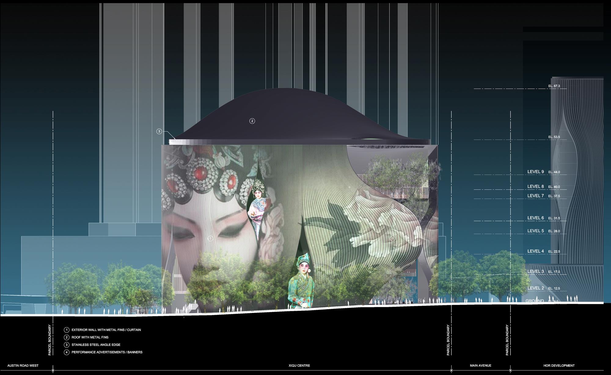 露天的空中花園帶來(lái)維多利亞港和遠(yuǎn)處城區(qū)的絕美景觀,抬高劇院可用于一些近距離的表演;還包括200個(gè)座位的茶館劇院,排練室,教育和行政空間,演講廳及以及能夠俯瞰中央內(nèi)部庭院的零售空間。戲曲中心于2019年1月開業(yè),是一個(gè)世界級(jí)的演藝場(chǎng)所,通過(guò)創(chuàng)造當(dāng)代化的表達(dá)方式,讓它充分體現(xiàn)東西方文化的豐富性,使戲曲這一最古老的中國(guó)傳統(tǒng)藝術(shù)形式能夠隨著現(xiàn)代的科技發(fā)展共同進(jìn)步。