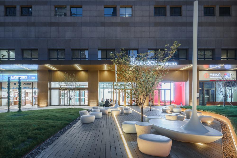 在室外景觀改造上,設計團隊增加流暢線條的景觀,延伸外部休閑平臺,打破原有建筑與城市空間之間的隔閡,營造非正式交流空間氛圍,增進辦公社區(qū)的活力。另外,設計團隊延續(xù)設計元素,為建筑打造了一體化的品牌標識系統(tǒng)。