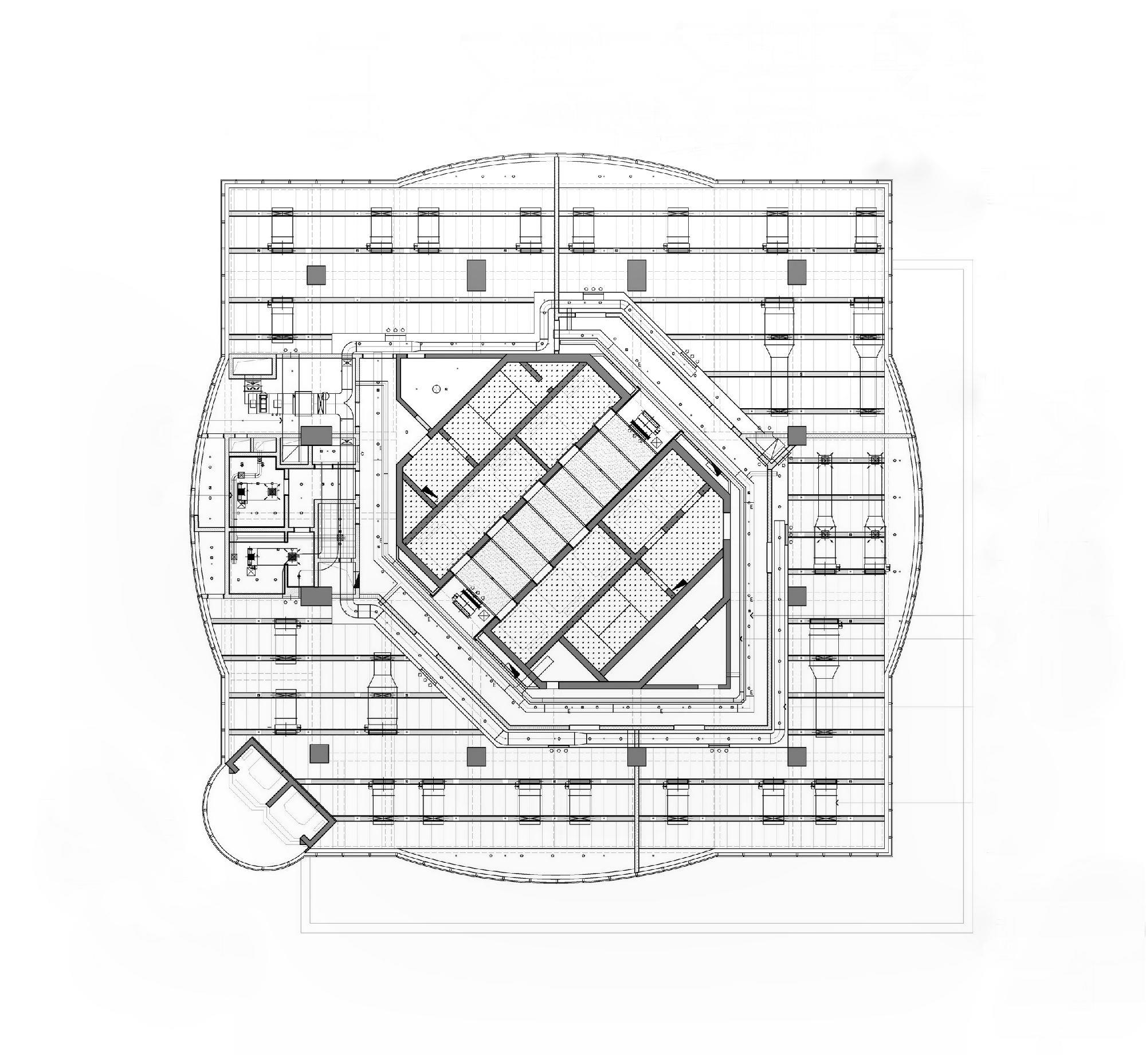 通過機電設備的空間管理,將大堂的高度由原來的4.2米提升到了現(xiàn)在的 4.8米,辦公標準層的層高也相應提升,大大改善了用戶的空間體驗。