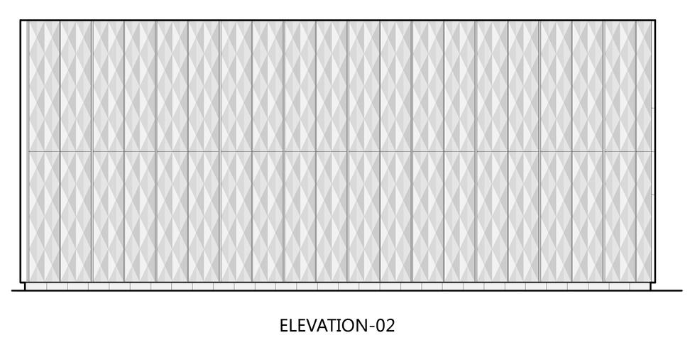 這座建筑被設(shè)計成8米高的雙層空間。本項目的立面設(shè)計著重于采用“舌貼式幕墻”的施工方法對幕墻單元進(jìn)行垂直分割。采用垂直鋁條作為裝飾,將曝光膠合縫隙的粗糙度降低到最低;同時,它們作為整體建筑細(xì)節(jié)的催化劑,在提高建筑質(zhì)量的同時,更好地體現(xiàn)其所代表的住宅項目的精致性和現(xiàn)代性。與此同時,粗糙不變的建筑框架與精致潔凈的幕墻系統(tǒng)形成了很好的對比,使整體效果和體驗更加有趣,能更好的與觀賞者互動。