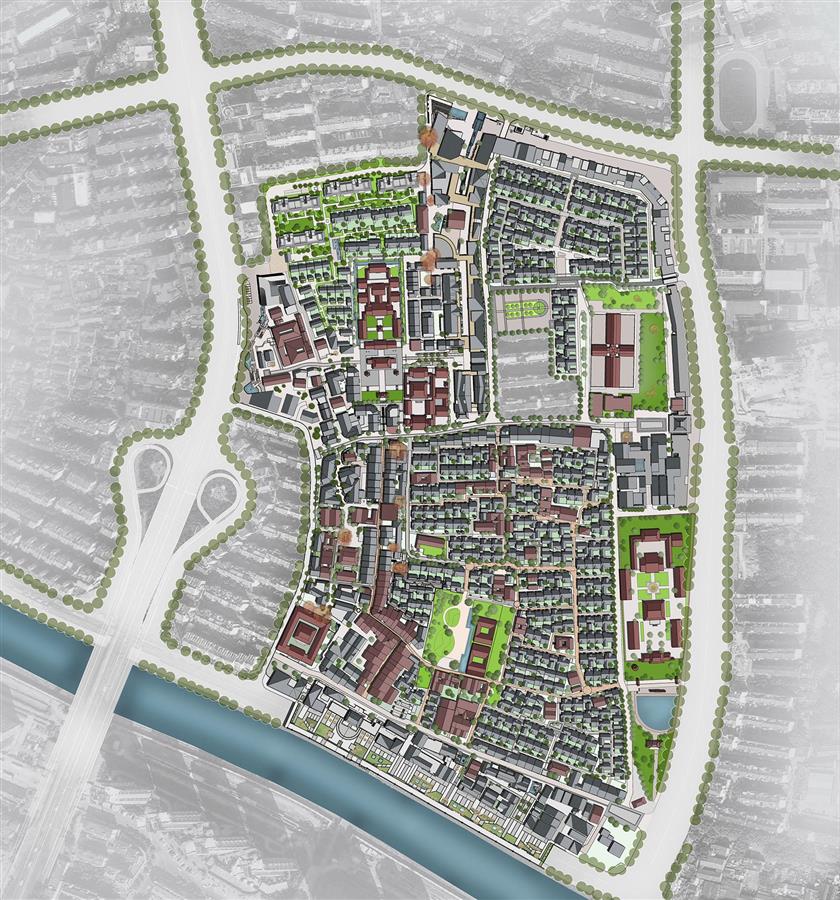 設計靈感 : 通過保護原真性歷史文化資源,延續(xù)歷史街道網(wǎng)絡和肌理,以現(xiàn)代的規(guī)劃理念,新式的建筑風格,融入傳統(tǒng)景觀元素,營造舒適的城市環(huán)境。