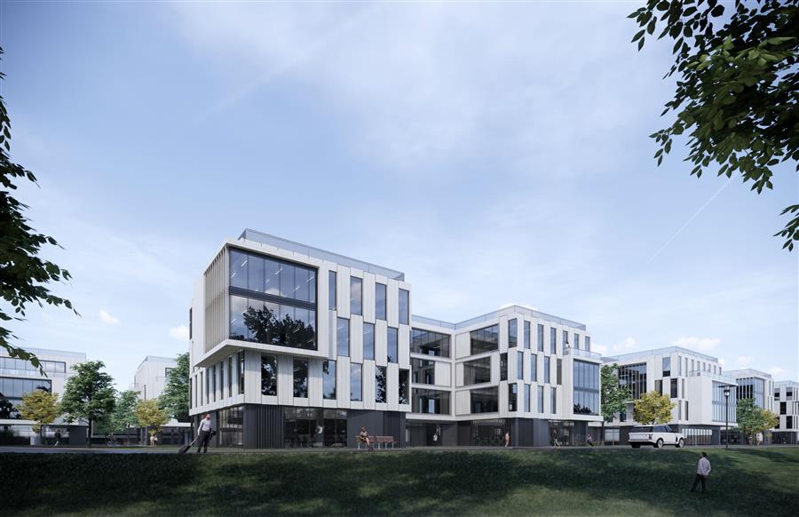 同時,內(nèi)部造景打造花園式辦公園區(qū)。項目采用外高內(nèi)低的布局方式,以庭院結合建筑組團的形式解決不同的功能需求。內(nèi)部獨棟辦公散綴在“辦公花園”的內(nèi)部景觀軸線上,并以景觀露臺和屋頂綠化的形式將建筑融于花園內(nèi)部。