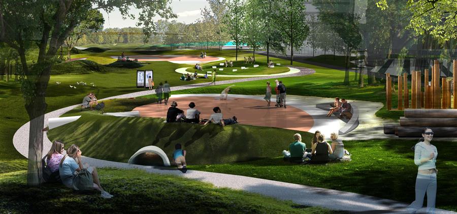 基地西側緊鄰204國道,雖然有城市綠帶的隔離,但相對環(huán)境不是特別優(yōu)越。在外部資源欠佳的條件之下,內(nèi)部造景,營造專屬于園區(qū)自己的私享大花園是較為合適的解決方案。