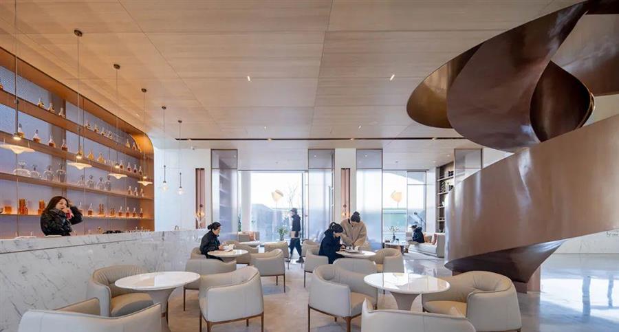 在建筑方案落定后,室內(nèi)軟裝團(tuán)隊(duì)接過接力棒...... 不同于以上接力賽式的配合模式,美學(xué)館尚在建筑概念階段時(shí),室內(nèi)和軟裝團(tuán)隊(duì)已提前介入, 丟掉接力棒,在建筑的延長(zhǎng)線上全專業(yè)攜手奔跑。