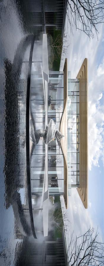 在美學(xué)館現(xiàn)代的外表下,是古典的對(duì)稱構(gòu)圖。流線造型消除了對(duì)稱的機(jī)械僵硬,零壹城市用輕盈的方式重新詮釋了古典美學(xué)。與此同時(shí),得益于對(duì)稱設(shè)計(jì),非標(biāo)準(zhǔn)構(gòu)件數(shù)量大幅縮減,施工難度降低,建造速度提升。