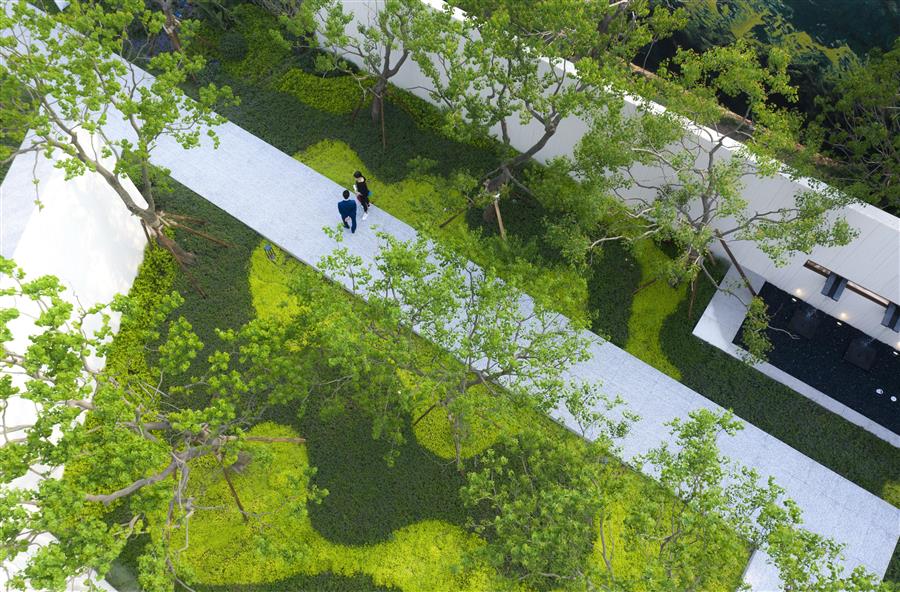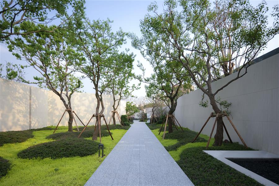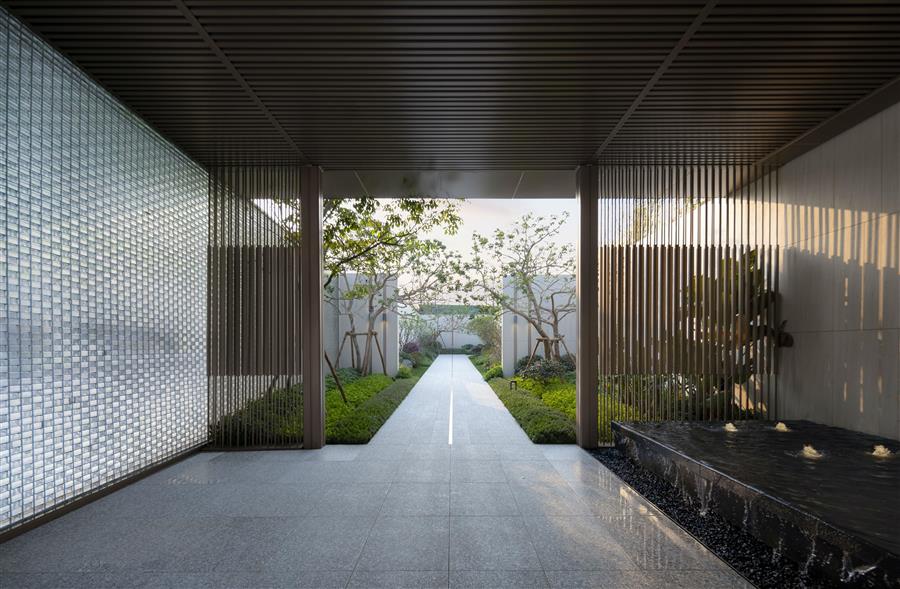 GND杰地景觀堅持從客戶及用戶的感受和體驗出發(fā),讓空間成為體驗的載體,讓體驗完成設(shè)計的閉環(huán)。駐足-溯游-洗禮-觀林-同游,當(dāng)樹影走過白墻,一幕幕情感體驗在這里上演。入門樓、過幽徑、登眺臺、聽水聲、觀風(fēng)起,沉浸式空間體驗通過我們細(xì)心編排的動線有機地融合在雅居樂濱江雅苑項目中。