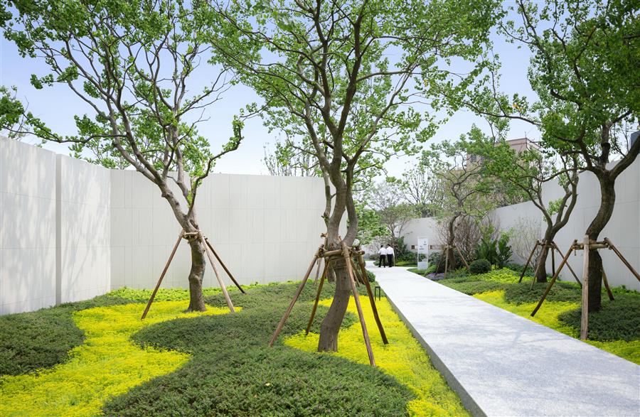 帶著尋夢的心情向花徑深處走去,道路曲折迂回,景墻以精心設(shè)計的角度伸展,分割空間、屏蔽喧囂、留住清凈。