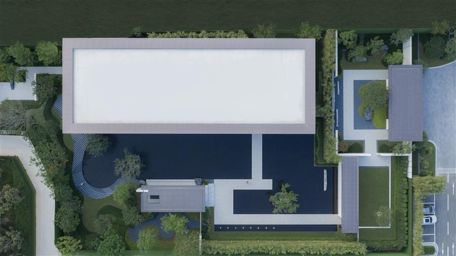 信步轉(zhuǎn)場之間,由山野歸林間,是一方返璞歸真的自然禪境,開闊的綠野有悠閑的雕塑,似踱步于浮洲,如停駐于綠波,寫意舒朗的自然景觀通過景窗、轉(zhuǎn)角、格柵變幻出更多的層次和感受,且將這份適意融入眼前的自然風(fēng)物中,隨心去暢游。