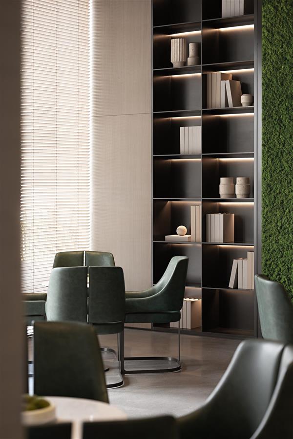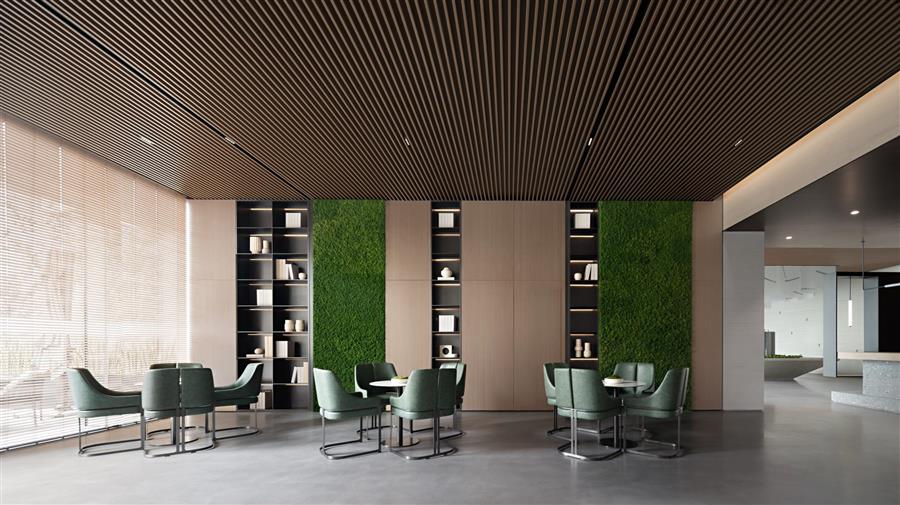 在通透開闊的尺度中,溫潤的木作、蔥蘢的綠意,以及輕巧靈動的落座形式,共同承載起情感氛圍的營造,以細(xì)微處的變動打破沉悶,構(gòu)建出輕松舒適、愉悅愜意的交談場域。
