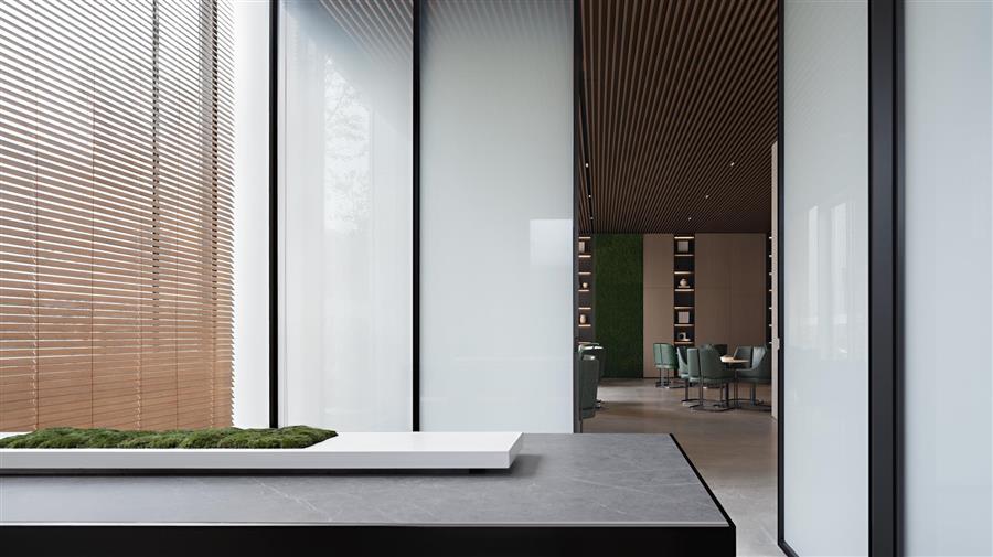 兩側(cè)玻璃盒子,為更私密的VIP室。閉合后是獨(dú)立的體塊,各有功用;打開則又相互關(guān)聯(lián),化零為整。開合之間,盡顯靈動氣韻。值得一提的是,精心挑選的漸變式玻璃,既彰顯了頂面的連貫性,又賦予其通透的呼吸感