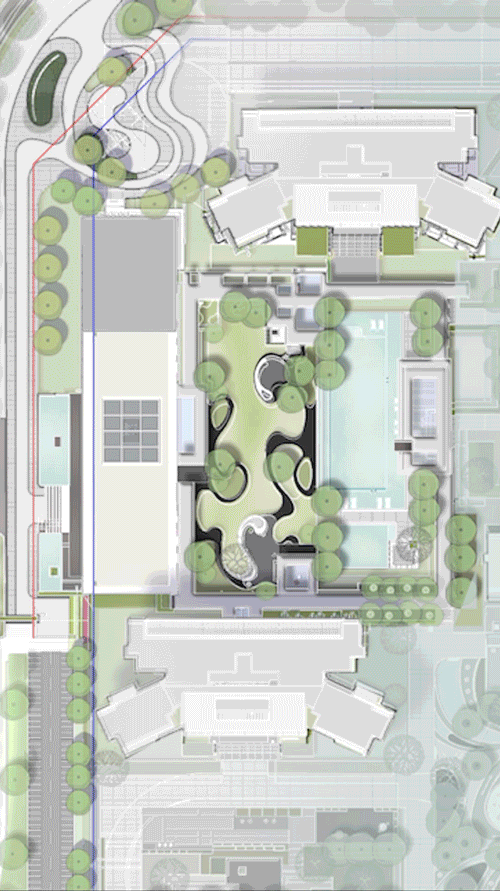 項(xiàng)目示范區(qū)設(shè)置于地塊東南側(cè),前期作為城市展示及銷售功能,未來(lái)兼具項(xiàng)目主入口及社區(qū)配套。