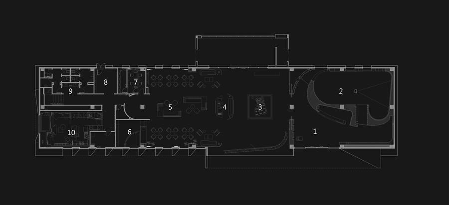 在街角塑造一個(gè)趣味的公共藝術(shù)空間,通過(guò)前區(qū)引導(dǎo)到達(dá)城市展廳,穿越展廳呈現(xiàn)在眼前回事一幅內(nèi)心復(fù)線的城市山林居所,人、景、筑三者恰為其中,相得益彰。