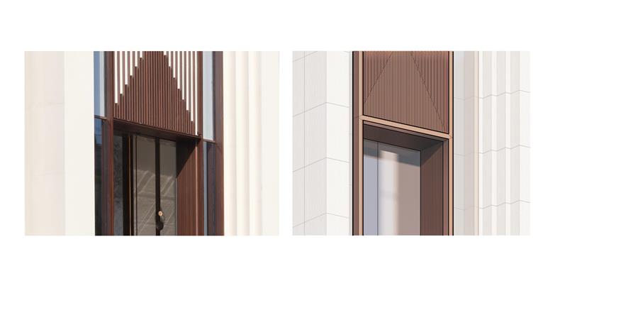在縱向?qū)⒔ㄖ?、景觀、室內(nèi)甚至軟裝等多重維度的設(shè)計(jì)要素進(jìn)行整體把控,在橫向?qū)⒉煌叽纾煌瑯?gòu)圖,不同組合關(guān)系的多種情況以數(shù)學(xué)美學(xué)進(jìn)行整合,使其在不同城市、不同場地、不同空間的建筑形態(tài)達(dá)到和諧,創(chuàng)造可抵御時(shí)間變化的經(jīng)典和有價(jià)值感的立面風(fēng)格。