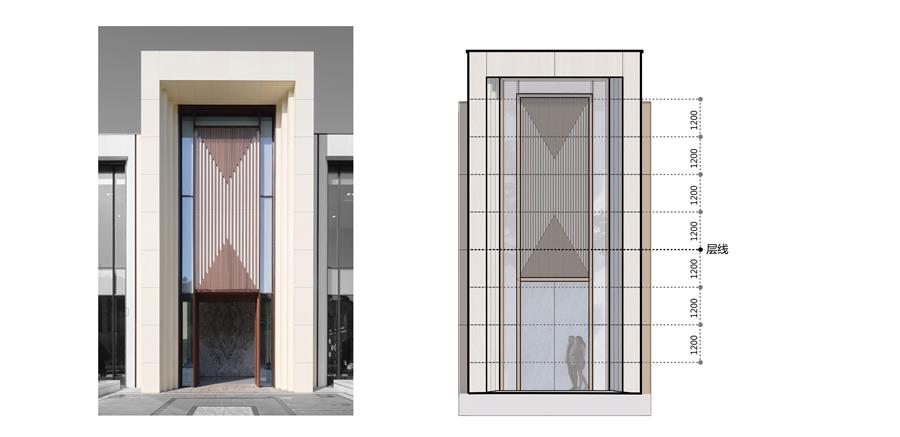 為融入西北地區(qū)的人文及風(fēng)貌,項(xiàng)目選擇大都會(huì)風(fēng)并進(jìn)行地區(qū)化改造,立面從經(jīng)典黃金分割比例著手,以單元式的方式強(qiáng)化立面韻律,將古典的經(jīng)典比例與現(xiàn)代的精致材料相結(jié)合,用石材和金屬的細(xì)膩組合創(chuàng)造價(jià)值感與尺度感并存的設(shè)計(jì),項(xiàng)目語言符號(hào)的提煉,結(jié)合了建筑大師卡洛斯卡帕的建筑景觀語言,參考了府谷當(dāng)?shù)氐慕ㄖ搶?shí)關(guān)系。整體以建筑為主導(dǎo),通過提前介入景觀、室內(nèi)共同設(shè)計(jì),實(shí)現(xiàn)了建筑,景觀,室內(nèi)高度一體化的完成效果。