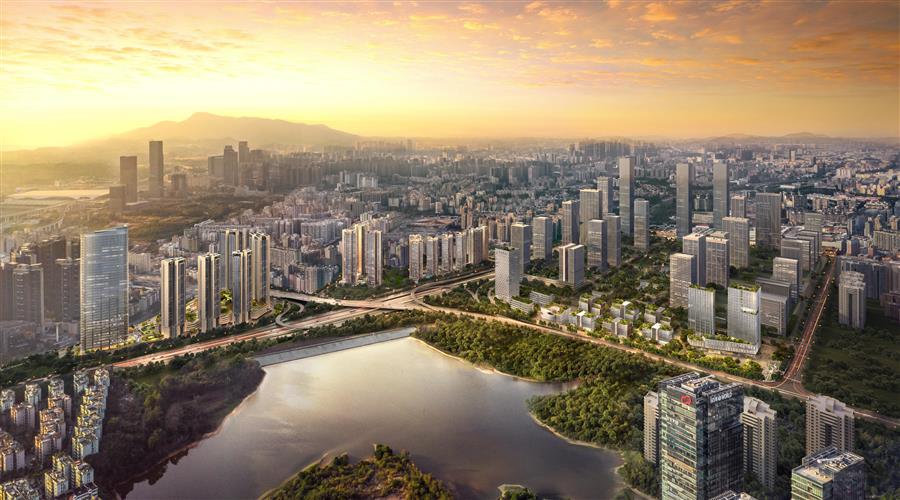 【深國(guó)際萬(wàn)科梅林關(guān)城市更新(三期)】位于深圳梅林關(guān),作為過(guò)去的“二線關(guān)”,這里曾是深圳早晚高峰最擁堵的地方。城市更新的首要之義,不僅是交通上的改造,更在于如何以點(diǎn)帶面,在整個(gè)片區(qū)塑造新的影響力。