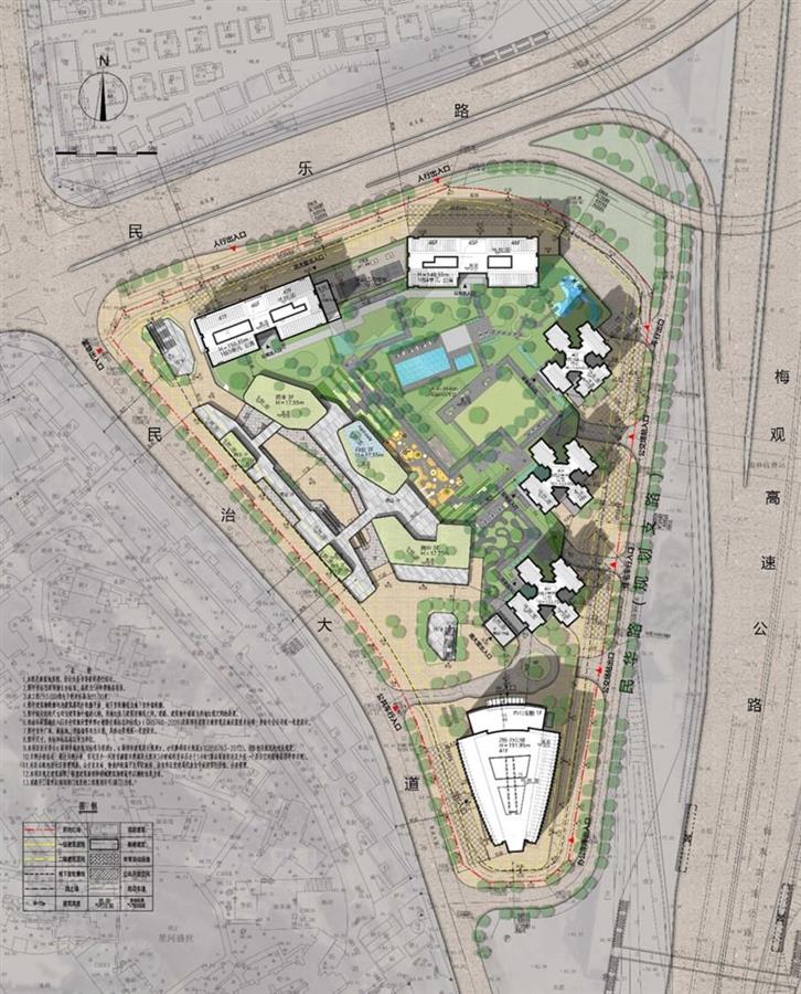 項(xiàng)目位于深圳龍華梅林關(guān)口,緊臨梅觀高速,坐落于地鐵21/22號(hào)線橫嶺站之上,容積率6.1,總建筑面積約45萬(wàn)㎡,包括200m的甲級(jí)寫(xiě)字樓,三棟超高層住宅,兩棟公寓,以及3萬(wàn)㎡的綜合商業(yè)步行區(qū)。