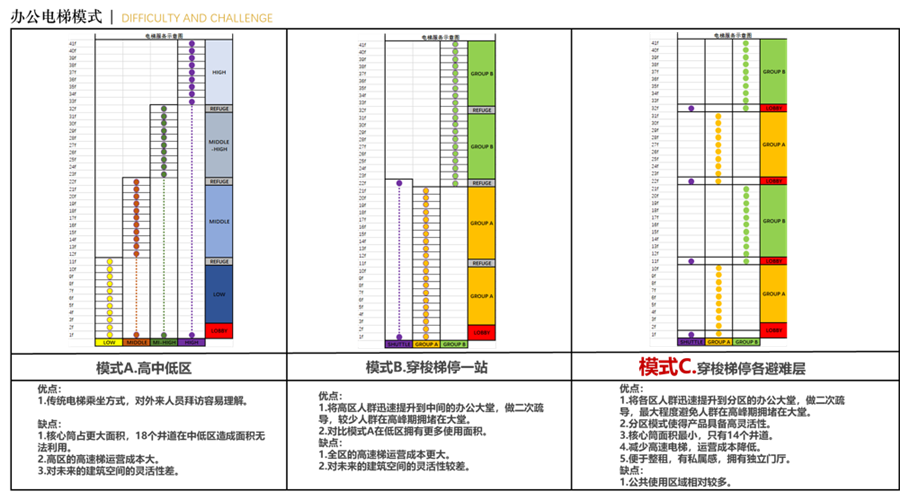 曾經(jīng)的“二線關(guān)”承載了深圳發(fā)展的特殊記憶,設(shè)計(jì)希望它在更新之后能夠以地標(biāo)形象,留存空間上的獨(dú)特體驗(yàn)與記憶。項(xiàng)目在立足三大功能的基礎(chǔ)上,遵循設(shè)計(jì)的統(tǒng)一性,辦公樓象征關(guān)口旗艦,電梯系統(tǒng)采用“高鐵+地鐵雙系統(tǒng)”的模式,穿梭梯停留各避難層,可將人群快速提升,減少核心筒面積和高速電梯數(shù)量,提高使用率。同時(shí),設(shè)計(jì)從方案之初就采用BIM設(shè)計(jì),實(shí)現(xiàn)了從方案到施工圖的全過(guò)程REVIT正向設(shè)計(jì),也方便了后期的運(yùn)營(yíng)與維護(hù)。