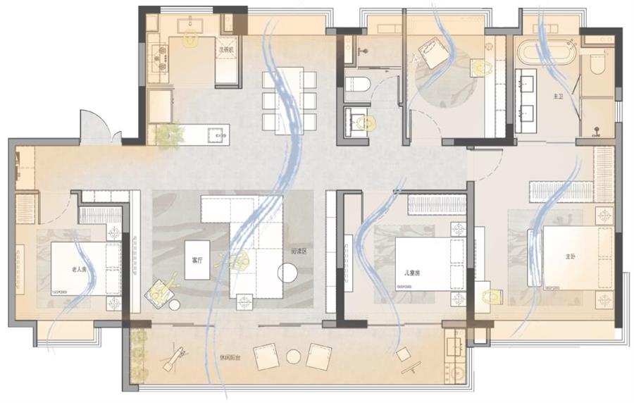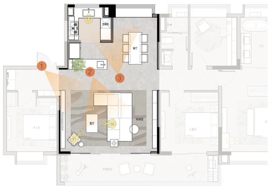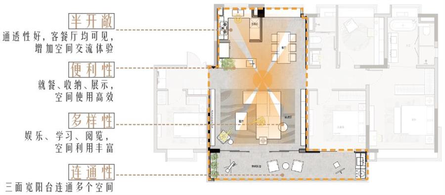 云萃府戶型:空間開放共享,以公區(qū)為紐帶,讓交流無處不在。