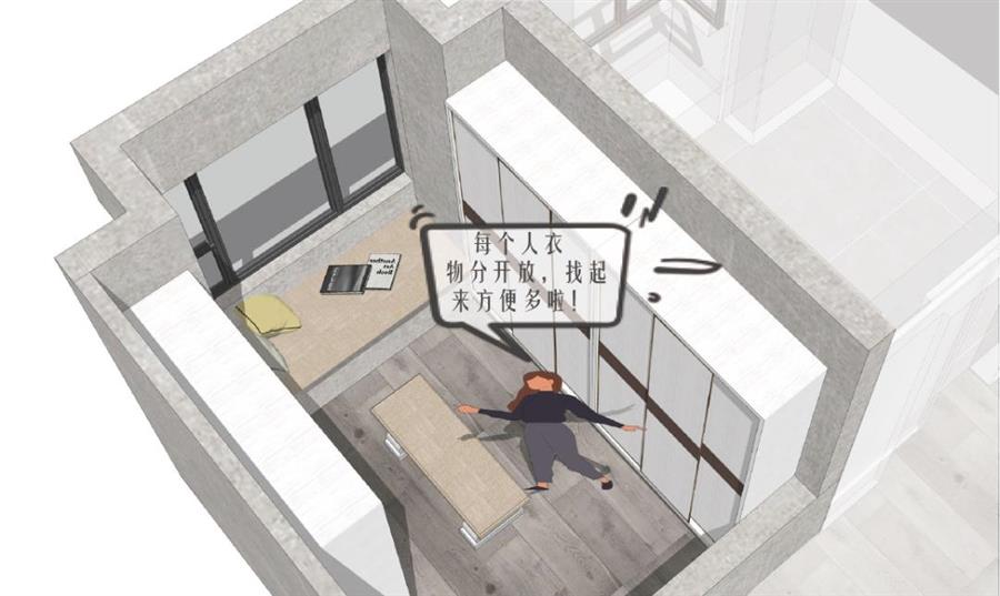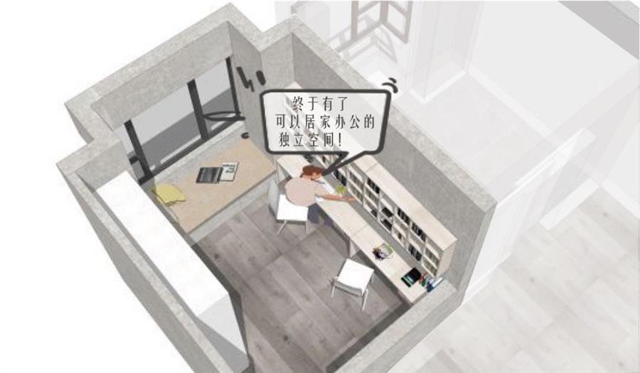 陽臺空間可以作為兒童房的拓展空間,改造成為雙孩房,孩子們一起讀書一起學(xué)習(xí)整理,同住同讀書,從小學(xué)會分享與交流,并且家長可以給予孩子們共同的陪伴,增進(jìn)家庭成員的情感交流。