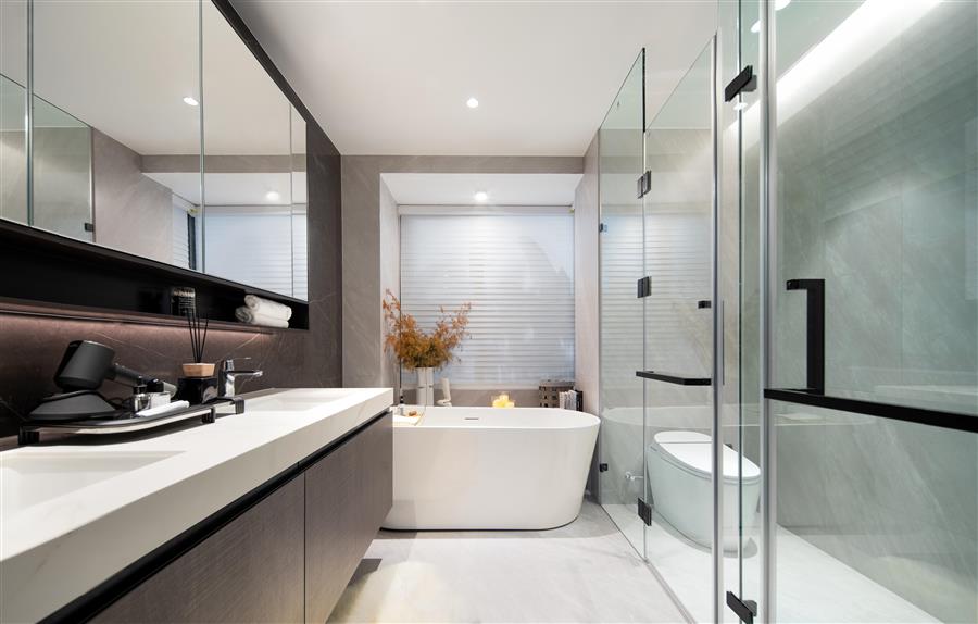 雙臺盆、浴缸打造輕奢酒店風(fēng),洗去一日的疲憊,舒爽愜意安然入眠。