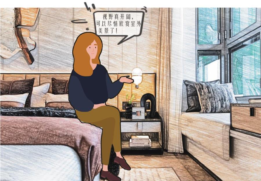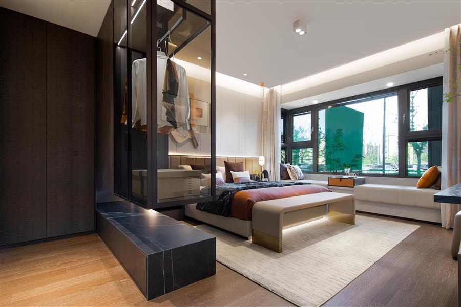 主臥4.15 米面寬,配上通長飄窗設(shè)計(jì),造就超大尺度視野,窗外美景,盡收眼底。